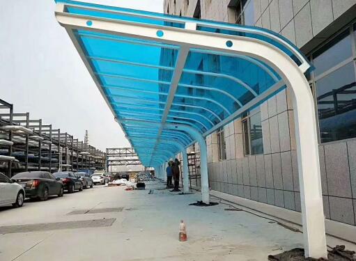 PC板檔雨棚,PC板雨棚案例不論安裝什么款式什么樣的擋雨棚,大家都希望能夠用的時(shí)間長(zhǎng)一些,使用期間不要出現(xiàn)老化、變色發(fā)黃、生銹、開(kāi)裂、漏水等問(wèn)題,都想擁有一個(gè)使用體驗(yàn)感滿分的擋雨棚。我們知道,擋雨棚除了擋雨,其實(shí)還面臨著每日暴曬陽(yáng)光的情況,擋雨棚不僅要能夠擋雨,還要能夠承受住紫外線的傷害,這樣才可以減少